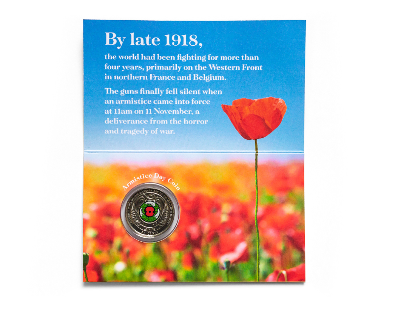 To celebrate the Armistice Day coin release, we designed a bundle of collateral to present the coin. This included a gift box, booklets, and a card.